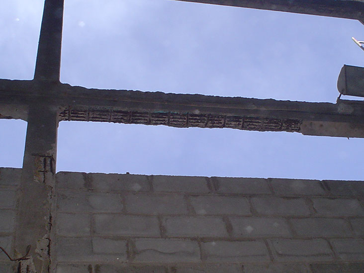 Devido ao fato de os fornos utilizarem o óleo diesel como combustível para fundição, gera uma reação química H2SO4, que forma uma atmosfera industrial totalmente corrosiva ao aço nas estruturas metálicas e de concreto armado. Neste caso utilizamos métodos de avaliação nas quais detectamos a necessidade de recuperação através de tratamento das ferragens expostas, e posterior recuperação da superfície e em alguns casos a necessidade de reforço estrutural.