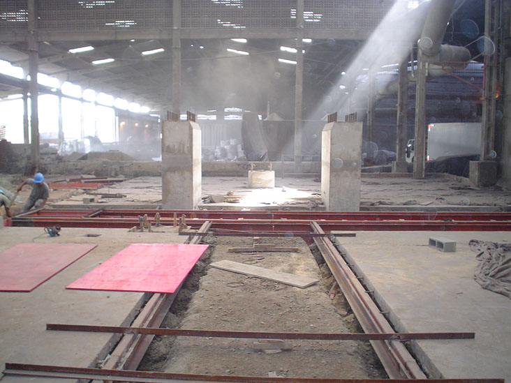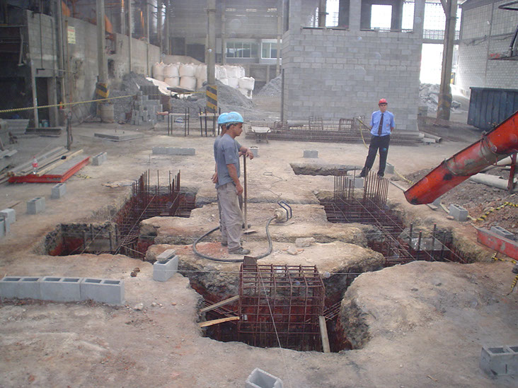 Serviços executados: Recuperação de estruturas de concreto armado, projetos e execução das bases dos fornos de fundição